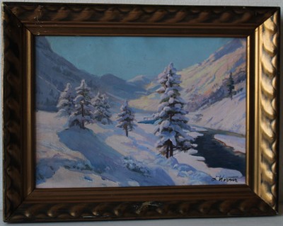Ludvik Werner (1900 - 1961) - Zimní nálada  Signováno viz foto. Jedná se o německého autora. Nejvyšší dosažená cena v aukčních síních 650€. Olej na lepence. Rozměry malba: 25 x 35 cm.