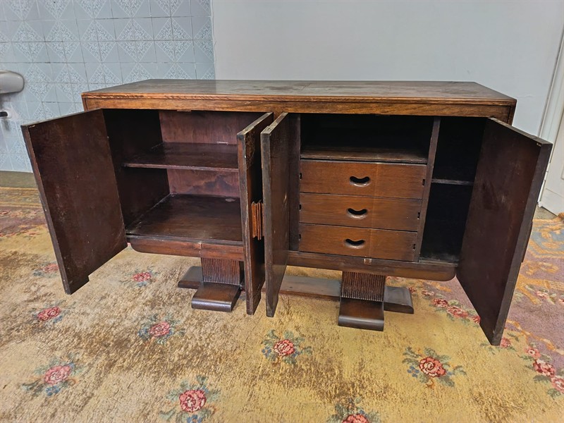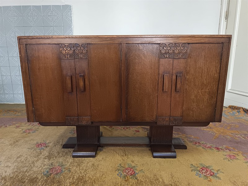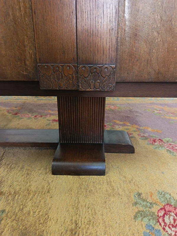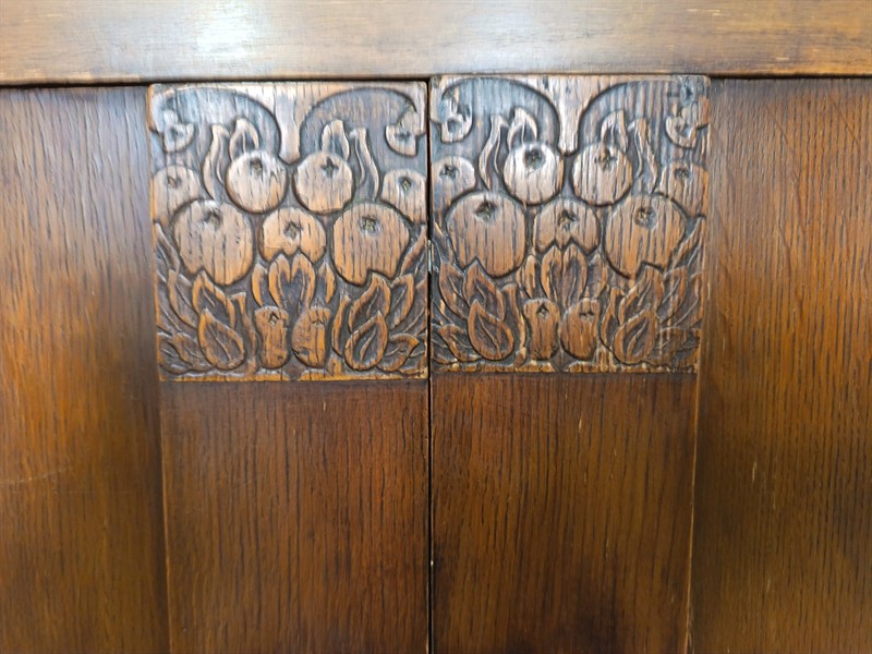 dubová dýhovaná dubová skřínka s řezbou kolem roku .1920 rozměr d.140cm v.90 š.50
