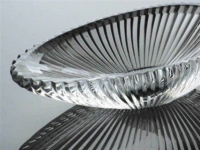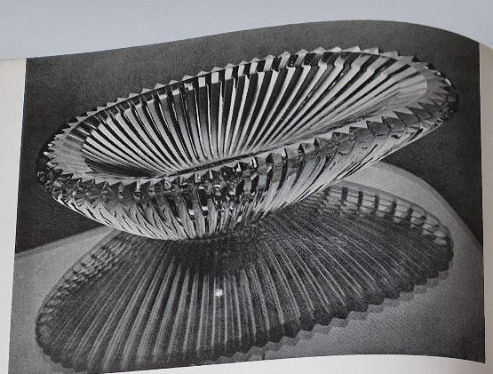 broušená křišťálová miska z poděbradských skláren, 60. léta, publikováno v časopise Šklář a keramik z roku 1962, délka 21 cm