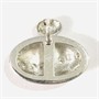 Moderní zlatý oválný přívěsek zdoben spirálou osázenou diamanty, která je v jemném kontrastu s matovaným povrchem. Přívěsek je osazen 13 diamanty briliantového brusu, z nich každý je o hmotnosti 0,02 ct, celkem je hmotnost 0,26 ct a jejich čistota i barva je velmi dobrá. Očko pro zavěšení je schováno za menším oválem. Decentní a vkusný šperk. Zhotoveno ze zlata o ryzosti 585/1000; nově opatřeno puncem Z-58 (labuť 4) na očku. Hmotnost je 1,70 g. Délka přívěsku u je 15 mm, výška je 12 mm. Ve velmi dobrém stavu.