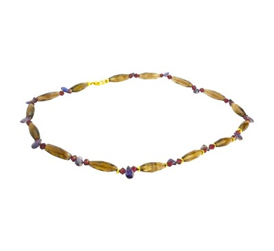 Jemný a přitom nepřehlédnutelný náhrdelník z přírodních polodrahokamů – kouřových topazů, turmalínů a ametystů – zaujme harmonickou kombinací teplých hnědých tónů, pestrých odstínů i elegantní fialové. Každý kámen podtrhuje přirozenou krásu materiálu a dodává šperku osobitý charakter. Náhrdelník má délku 44 cm, jemně obejme linii krku a je zakončen uzávěrem ze zlata ryzosti 585/1000 (14 kt), který podtrhuje jeho kvalitu a nadčasovou eleganci.