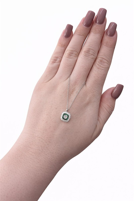 č. 182 737 Náhrdelník z bílého zlata s diamanty a smaragdy