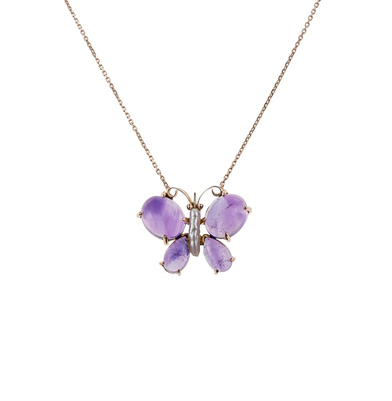 Náhrdelník ze žlutého zlata s přírodními ametysty