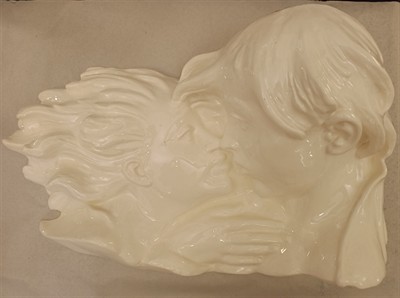 Nástěnný keramický závěsný reliéf značeno Pexider Letovice model: Rudolf Hlavica šířka : 52,5 cm