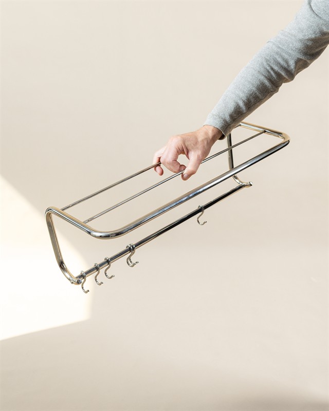 Období-Funkcionalismus Datování-1930 Původ-Čechy. Výrobce-Hynek Gottwald. Materiál-chromovaná trubka. Rozměry-v 20. š 60. h 25 Stav-restaurován původní originál, nově chromováno. Poznámka-katalogový model, cena za 1 ks malého modelu. Doručení-zajistíme po dohodě