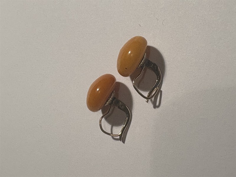 Výrazné jantarové stříbrné náušnice s klasickým zapínáním.Zlaceno, 60 leta. Celková váha 2,40 g. Sterlingové stříbro (900/1000).