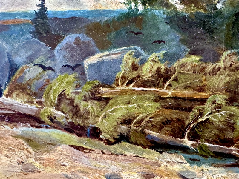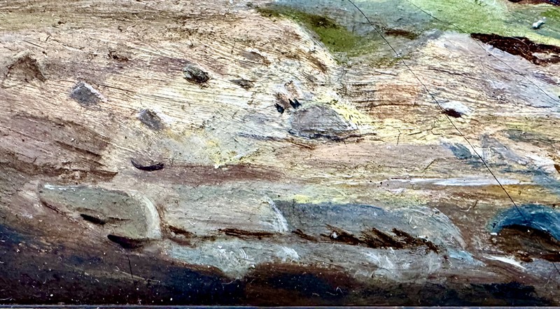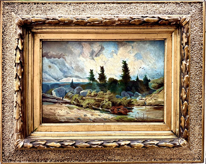 Zajímavý a kvalitní olej na desce o velikosti 21 x 30,5 cm, celkový rozměr je 40 x 50 cm. Rámováno v púvodní dobové adjustaci, krásném galerijním rámu. Signováno nečitelně vlevo dole. Odborně vyčistěno,