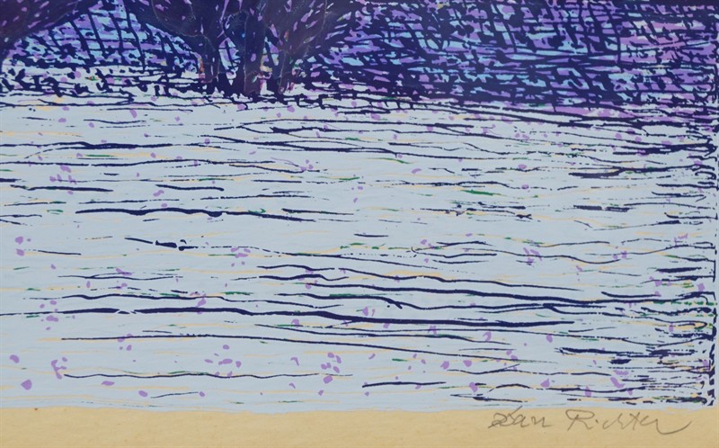 Snový motiv z Českého středohoří - parní vláček jedoucí zasněženou noční krajinou, barevná litografie od malíře, grafika a ilustrátora - Dan RICHTER (*1930 +2020). Výtvarník který žil na tvořil na Litoměřicku a ve svých dílech se inspiroval krásami Českého středohoří, jeho tvorba je zastoupena v mnoha sbírkách. Litografie č. 26/80 dat. 1976 v původním rámu, paspartováno pod sklem, sign. p.d. Dobrý stav (dva drobné oťuky na rámu), celkový rozměr 75 x 49cm, rozměr díla 53 x 23cm