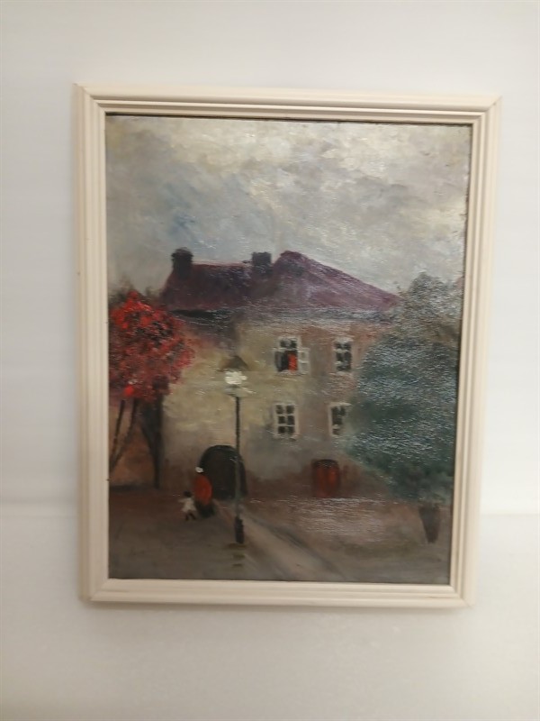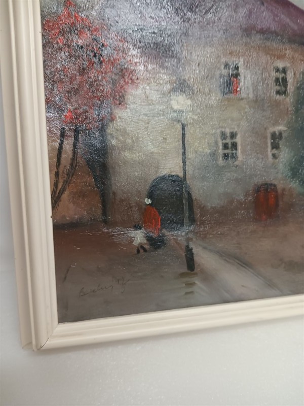 Olej na kartonu - Nocturno ve staré Praze , dle J. Schikanedera . Signováno nečitelně . Rozměry 34,5 x 27,5 cm .