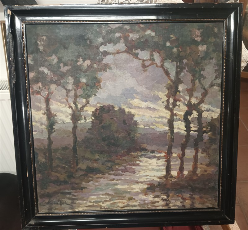 Emanuel Knížek , krajina , olej na plátně, rám původní, poškozený . Rozměry bez rámu 53 x 53 cm .