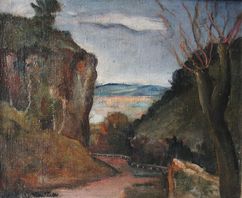 Oldřich Koníček (1886 - 1932) - Šárka Signováno viz foto. Studoval na pražské AVU u prof. R. Otterfelda. Od roku 1910 byl členem Spolku výtvarných umělců Mánes. Inspiroval ho impresionismus a fauvismus. V roce 1919 byl v Itálii, kde maloval bojiště ze světové války pro Památník Osvobození (41 velkých obrazů). Jeho malířská tvorba byla vysoce hodnocena dobovými výtvarnými kritiky. Olej na plátně.