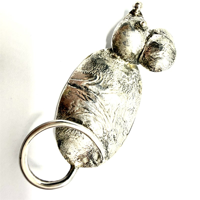 Originální, osobitě ztvárněná stříbrná brož - myš. Šperk byl zhotoven ze sterlingového stříbra, váha 17,08 g. Jehla z funkčních důvodů z obecného kovu. Rozměry 5,5 x 2,5 cm. Perfektní stav.