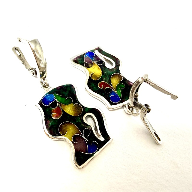 Originální stříbrné náušnice zdobené smalty