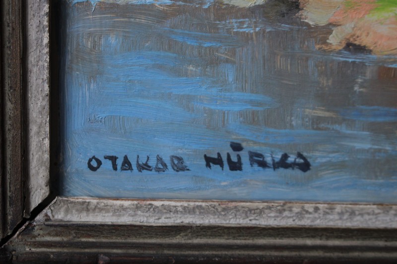 Otakar Hůrka - Chalupa u potoka Signováno viz foto. Obraz je v krásném stavu a má původní krásný rám. Olej na kartonu. Rozměry: 36 x 45 cm malba, 50 x 58 cm rám.