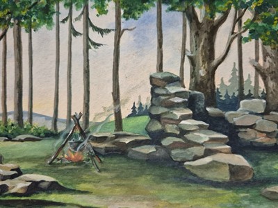 Skvělá práce vyhledávaného kubistického malíře, ilustrátora a karikaturisty Otakara Mrkvičky (1898-1957), člena Devětsilu Olejová tempera na kartonu a rozměrech 16 x 30 cm. Nesignováno. Nerámováno, vloženo do pasparty. Koupeno v přední české aukční síni (doklad k dispozici), která obraz získala od autorovy rodiny. (1898 - 1957).