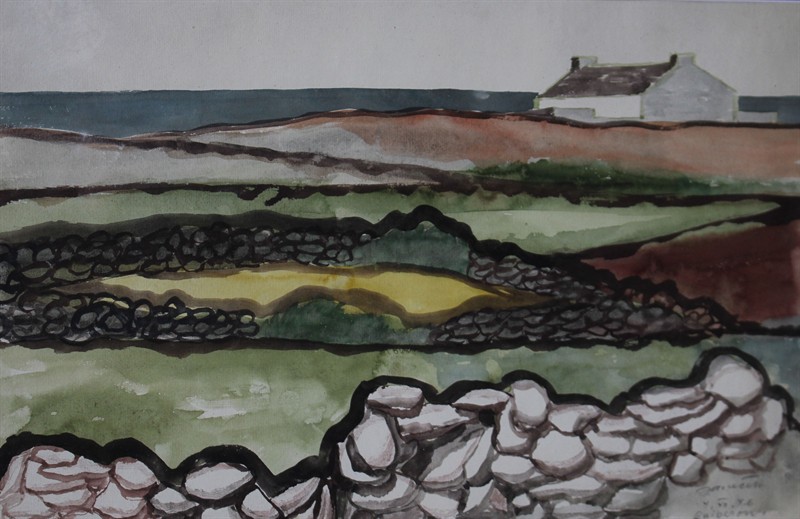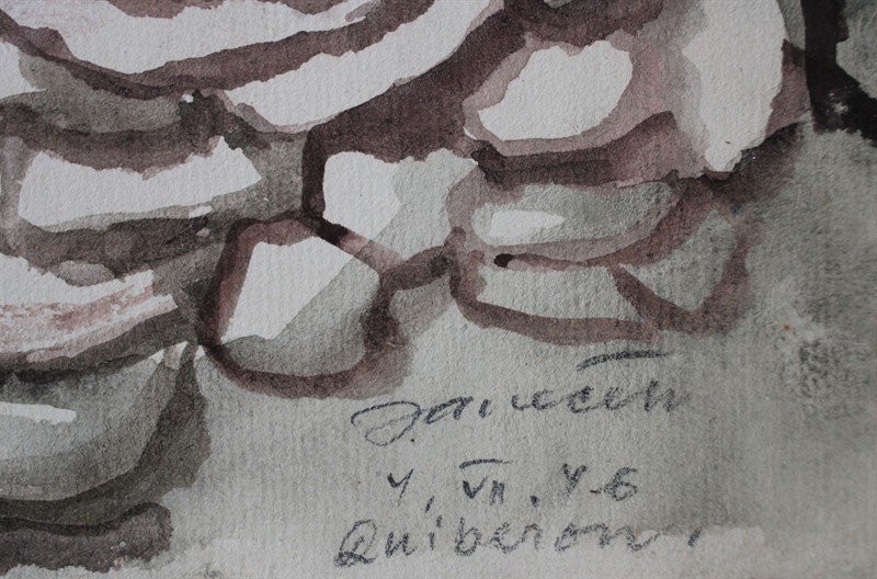 Oto Janeček (1919 - 1996) - Ruibeion 1946 Signováno viz foto. Malíř, grafik a profesor v Praze. Studoval na umělecko průmyslové škole v Praze u prof. Kysely a Nováka (1941 - 1942), poté na vysoké škole architektury a pozemního stavitelství u prof. Blažíčka a C. Boudy (1937 - 1939). Maluje podobizny, zátiší a figurální kompozice. Sklon ke grotesce a karikatuře. Vliv kubismu.  Akvarel na silném papíru. Rozměry: 27 x 41 cm malba, 38 x 55 cm rám.
