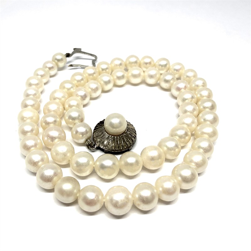 Perlový náhrdelník se zdobným stříbrným zapínáním