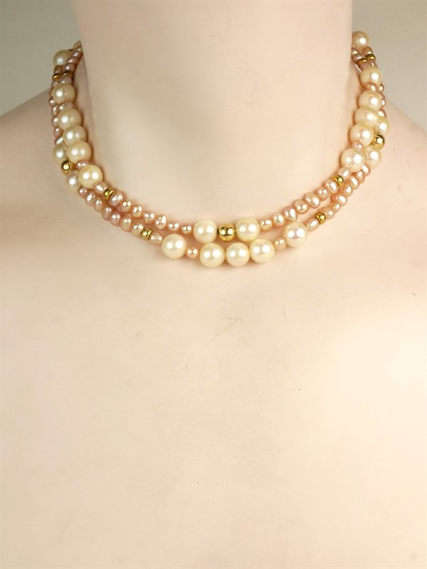 č. 181 530 Perlový náhrdelník se zlatými kuličkami