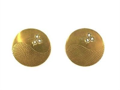 Starožitné pozlacené stříbrné manžetové knoflíčky zdobené říčními perličkami a tepaným secesním dekorem. Stříbro ryzosti 800/1000, hmotnost 6,17 g. Průměr knoflíčku 2 cm. rakouský punc AV. Knoflíčky jsou z Čech z konce 19. století.