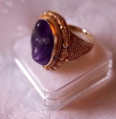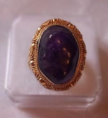 Prsten s ametystem je puncovaný platným českým puncem pro cizí zboží platným od roku 1921. Prsten je stříbro 925/1000 silně zlacené. Váha prstenu je 10,40 gramů a velikost prstenu je 57. Velikost prstenu je variabilní, lze jej roztáhnout do větší velikosti nebo naopak zmenšit. Průměr koruny prstenu je 2,5 cm na délku a 2 cm na šířku. V koruně prstenu je velký ametyst, který není vybroušený, ale je zasazený v přírodním stavu. Je to krásná šperkařská práce.