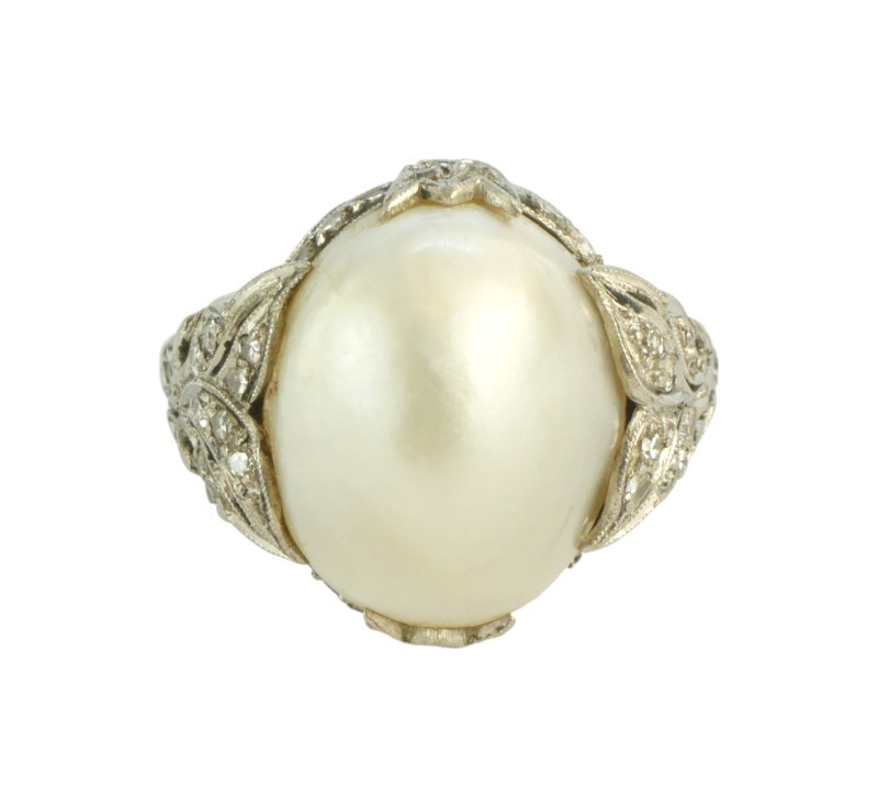 Platinový prsten s diamanty a barokní perlou, Pt 950/1000, hmotnost 4,9 g velikost : 50
