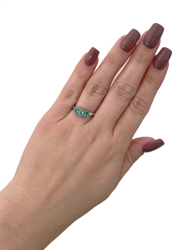 Materiál: bílé zlato o ryzosti 375/1000 Hmotnost: 2,59 g Rozměry: velikost prstenu 55,5, míry hlavy 1,3×0,6 cm Drahokamy: – 3 ks přírodních smaragdů, celková hmotnost 1,10 ct, ovál fasetový, rozměr 5 x 4 mm Stav: výborný Pravost drahokamů byla ověřena gemologickou laboratoří. Ověření je vedeno pod evidenčním číslem, které uvádíme v našem certifikátu. Pro vaše maximální pohodlí nabízíme kompletní zlatnický servis: úpravy velikosti, odborné opravy, rhodiování, výměny kamenů, profesionální čištění, leštění i znalecké odhady. Vše přizpůsobíme vašim přáním.
