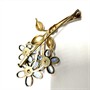 Malebná brož znázornující kytici se třemi květy. Šperk zdobí ocelově modré kameny na místě okvětních lístků. Obecný kov. Rozměry cca 5 x 2,ř cm. Pojistka zapínání. Výborný stav.
