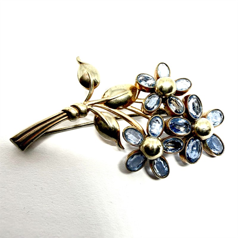 č. 181 553 Prvorepubliková brož s modrými kameny - kytice