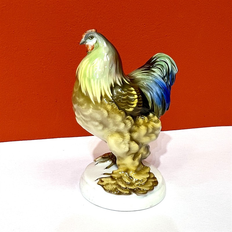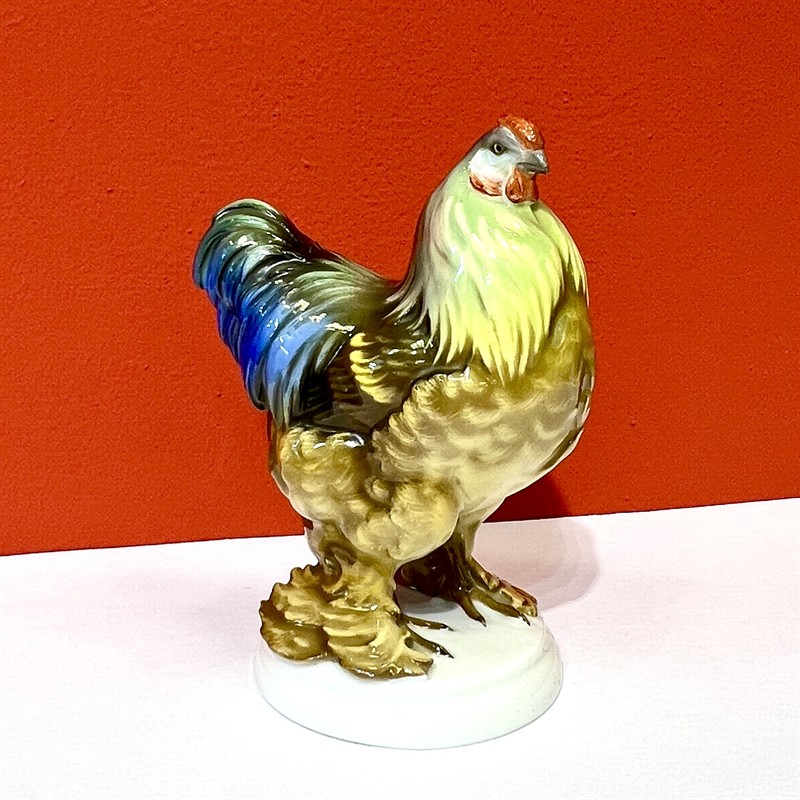Nádherná barevná porcelánová plastika slepice Rosenthal, Německo, návrh: O. Obermaier, 50. léta 20. století, výška : 13 cm