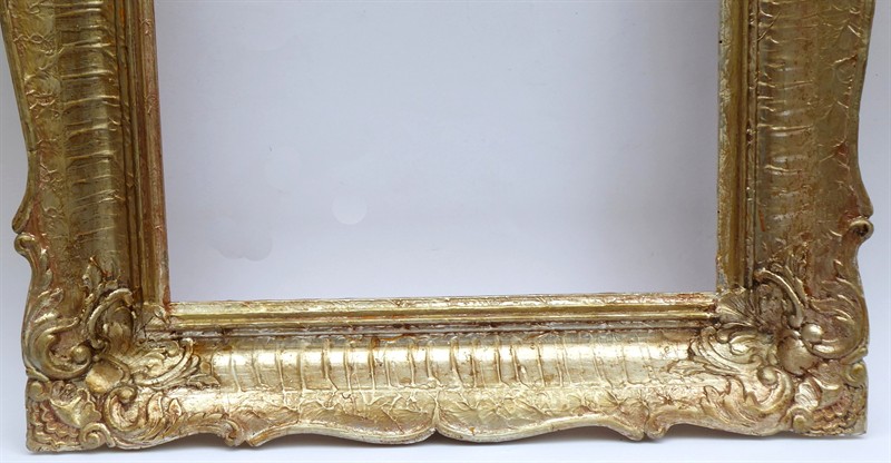 Dřevo se stříbrnou patinou. Světlost 33,5 cm x 48,5 cm. Stříbřitě zlatavý rám s ručně řezbovanými ornamenty v rozích a ozdobnou horní linií. Československo 1920 - 1940. Celkový rozměr 50 cm x 65 cm.