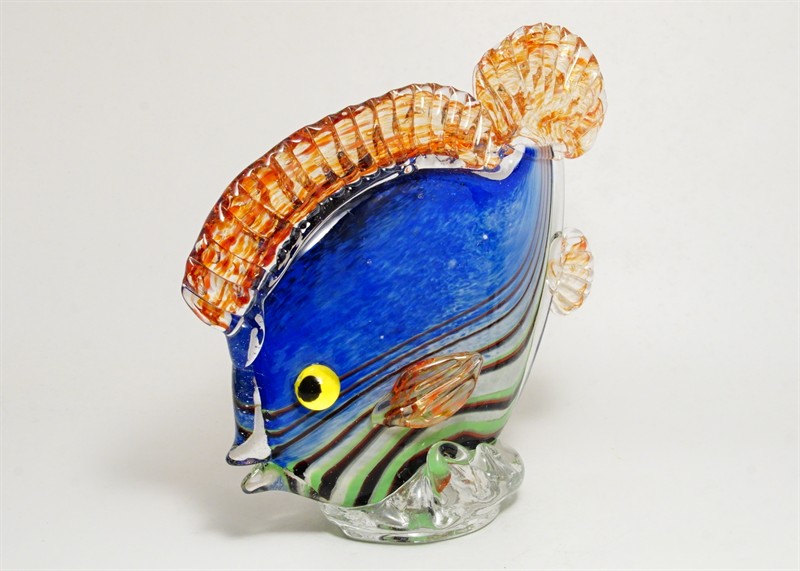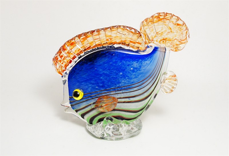 RYBA - figurální plastika barevné hutní sklo, sklárna ŽBS
