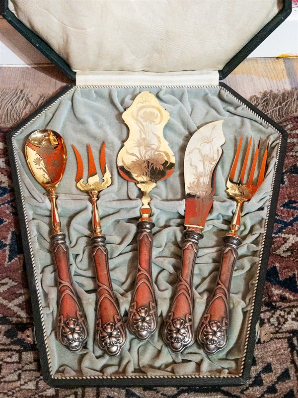 Secesní stříbrné předkládací příbory