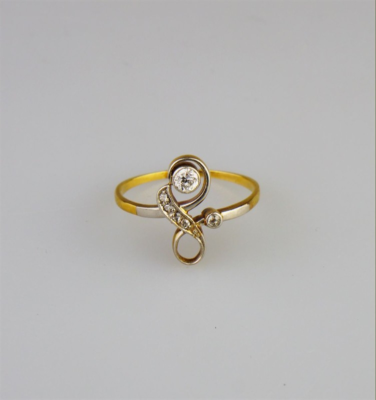 č. 182 274 Secesní zlatý prsten s diamanty