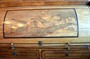 Hezký psací stůl s intarzovanou roletou z poloviny 19 století. Používaný v interiéru, vhodný ke zrestaurování. Výška 140 cm, šířka 105 cm, hloubka 65 cm. Odvoz vlastní nebo po domluvě.