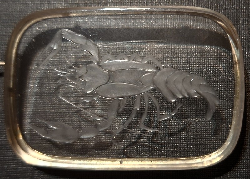 Stříbrná brož – medailon se znamením střelce, stříbro ryzost 800/1000, hmotnost 8,8 g, rozměr 3,5 x 4 cm, , značeno K & L – firma Kordes & Lichtenfels (K&L) Německo, art deco 30 léta Jantarový přívěsek se stříbrným očkem, stříbro ryzost 875/100, puncováno sovětským a československým dovozovým puncem, Kaliningrad SSSR, průměr asymetrického jantarového medailonu 2,5 – 2,8 cm Stříbrná brož pozlacená s kamínky, stříbro 900/1000, jehla a její uchycení z ok, rozměr 7,7 x 1,5 cm, celková hmotnost 6,5 g, art deco 20. léta m.s. Velká brož s rytinou raka, sklo, obecný kov, 5 x 3,5 cm, hmotnost 24 g,, art deco 20. léta m.s., 20. léta m.s, art deco Zlacená brož – přívěs s barevnými kameny a perletí, pravděpodobně Sedmihradsko 19. století, žlutý kov (tombak ?), rozměr 5 x 3,5 cm, hmotnost 16 g, pravděpodobně Sedmihradsko 19. století, výborná zachovalost