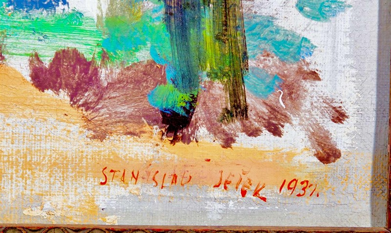 Olej na plátně o velikosti 60 x 81 cm, rámováno, signováno a datováno vpravo dole “Stanislav Ježek 1931” Stanislav Ježek (1904-2001), byl výrazný český malíř 20. století, studoval na AVU v Praze u prof. Nechleby, byl aktivním členem výtvarného spolku SVU Mánes a také se účastnil výstav skupin Radar a M 58.
