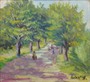 Olejová tempera na kartonu 28 cm x 31 cm. Signováno vpravo dole. Autor obrazu: Stanislav Lolek (1873-1936). Scenérie lidských postaviček míjejících se na cestě alejí v parku. Dobový světlý rám s okrovými linkami a sklem, rám nesoucí stopy mírného opotřebení. Československo 1920 - 1935. Celkový rozměr s rámem 41,5 cm x 44,5 cm.