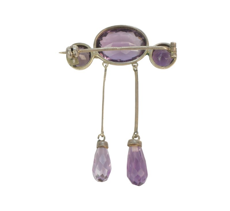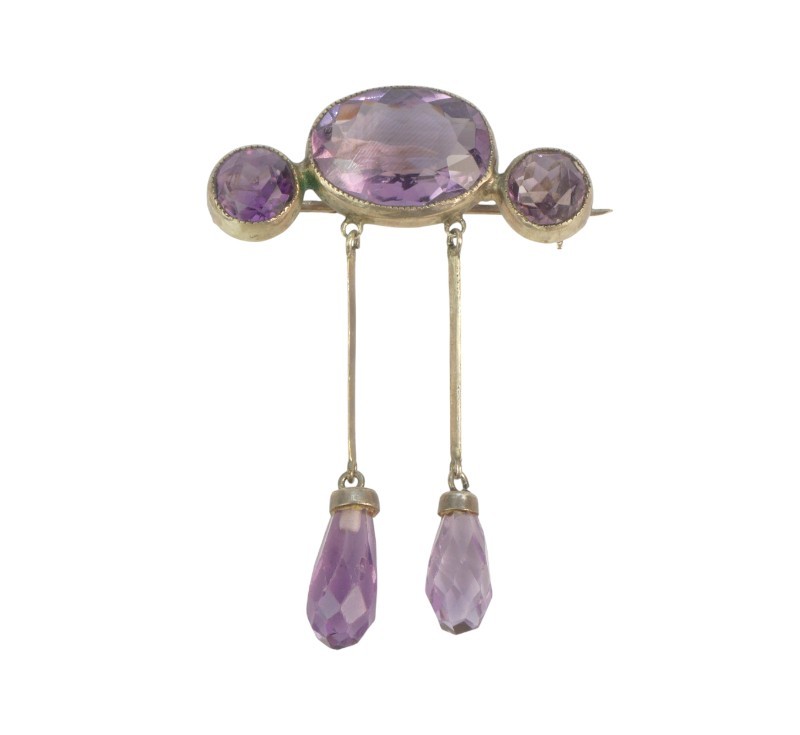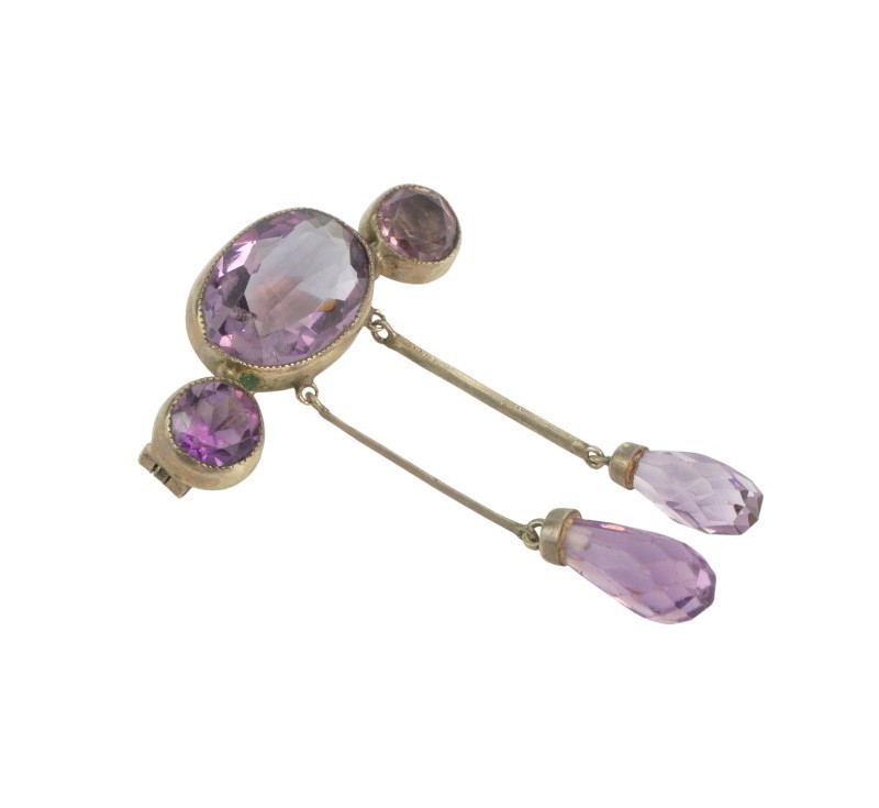č. 179 869 Starožitná stříbrná brož s ametysty