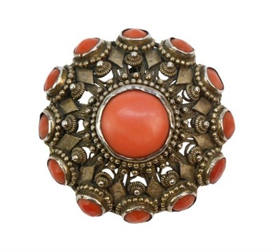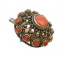 Starožitná stříbrná brož/závěs s mořským korálem, stříbro o ryzosti 925/1000 o celkové hmotnosti 36,05 g, průměr brože: 4 cm, Atest Puncovního úřadu