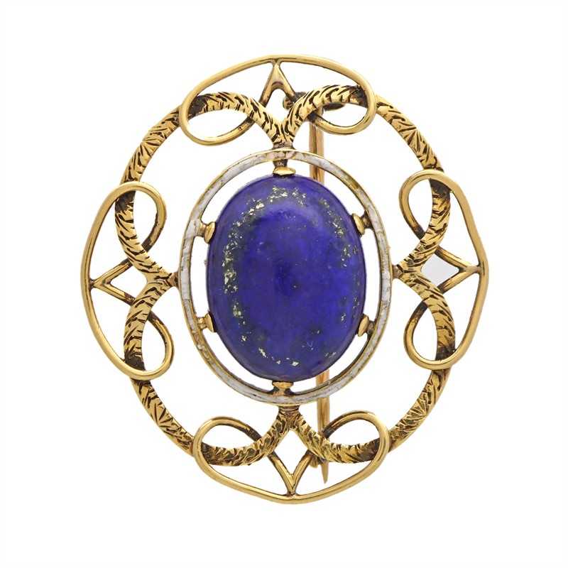 Starožitná zlatá brož s lapisem lazuli