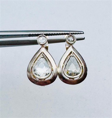 NÁDHERNÉ 14K ZLATÉ ZÁVĚSNÉ NÁUŠNICE S VELKÝMI DIAMANTY 2,00 CT - dvě kapky starého brusu a dva diamanty a o celkové váze cca. 1,70 ct, velikost velkých diamantů je cca. 6,5x,5,5 mm, každý cca. 0,80ct., rozměr náušnic je 20x10 mm, váha 4 gramů.