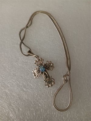 č. 179 047 Starožitný křížek s modrým kamenem, stříbro