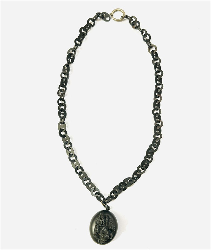 č. 180 417 Starožitný náhrdelník s medailonem z ebonitu