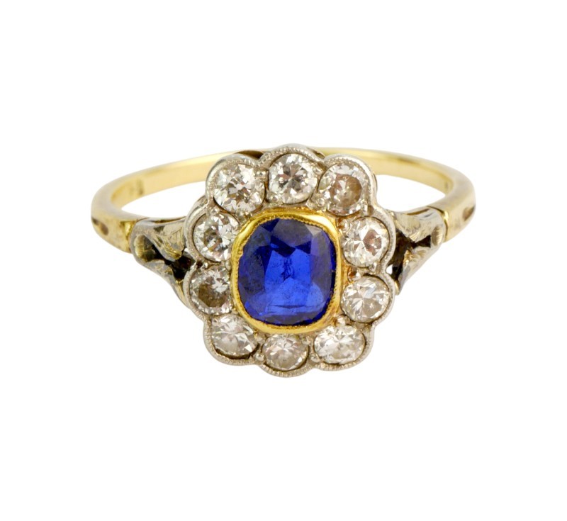č. 180 571 Starožitný prsten se safírem a brilianty