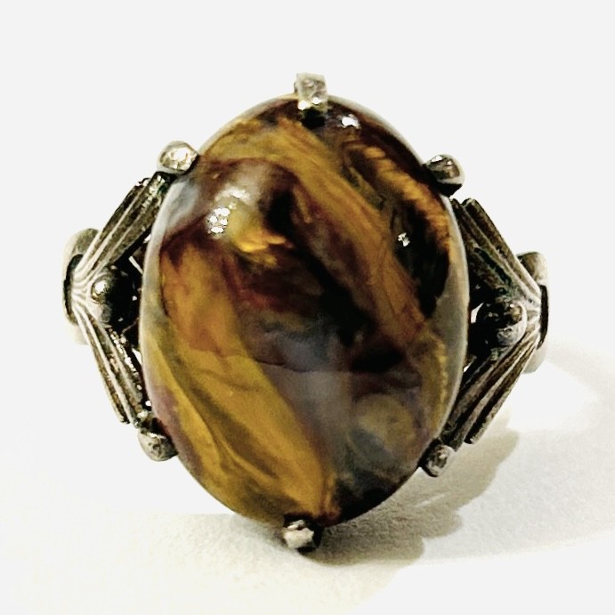Starožitný stříbrný prsten s achátem-tygřím okem