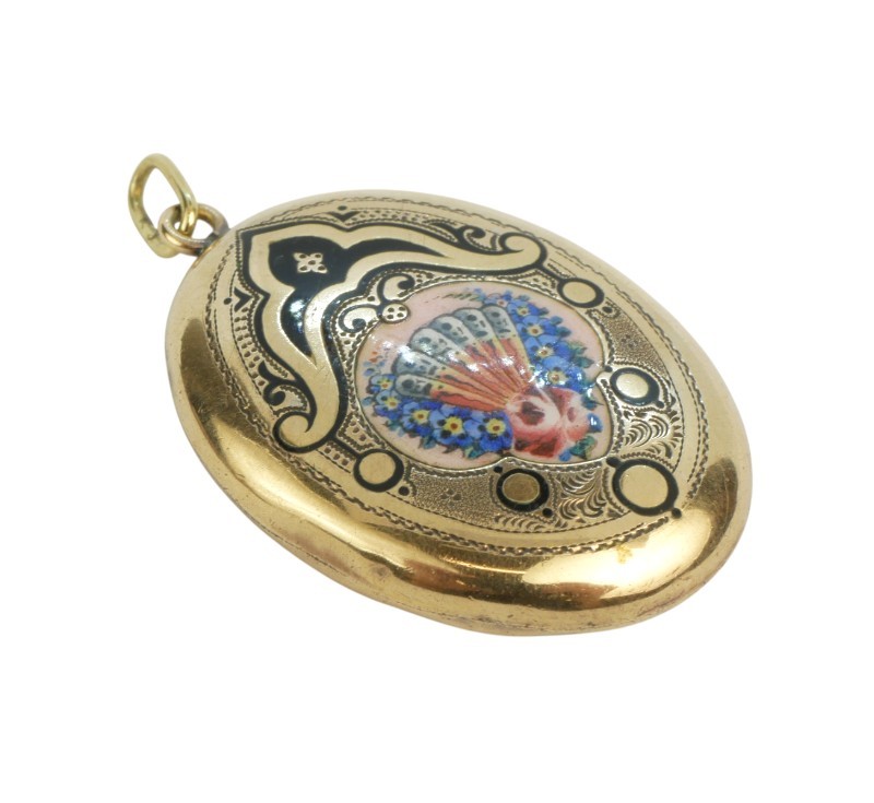 Starožitný zlatý medailon se smaltem