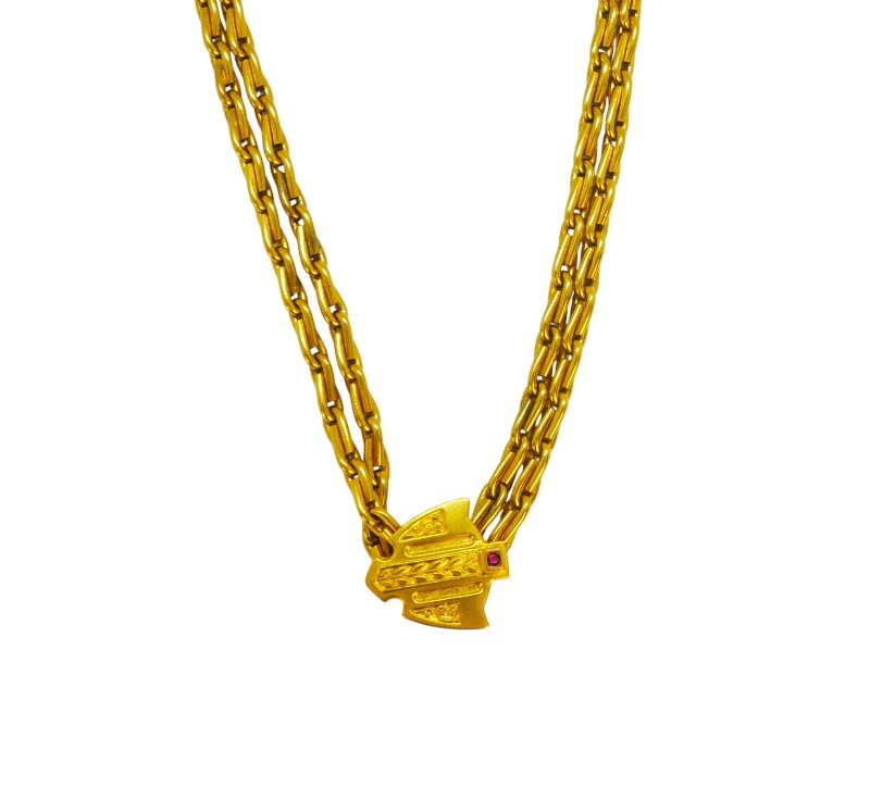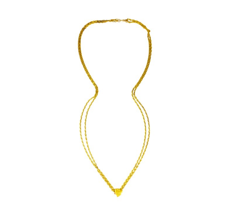 Zlatý náhrdelník z období Rakouska-Uherska, 19. století, Au 580/1000 o celkové hmotnosti 33,30 g. Délka cca 76 cm.