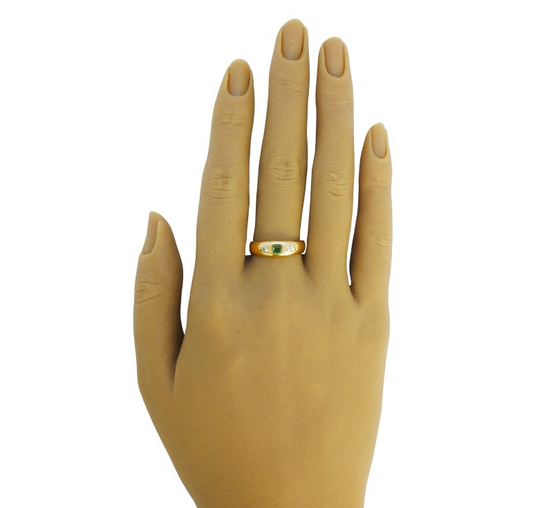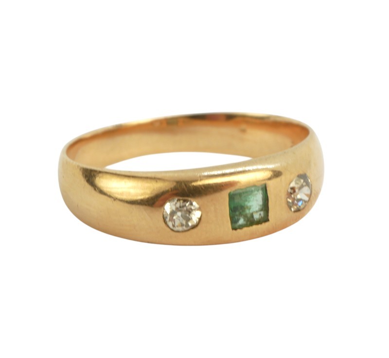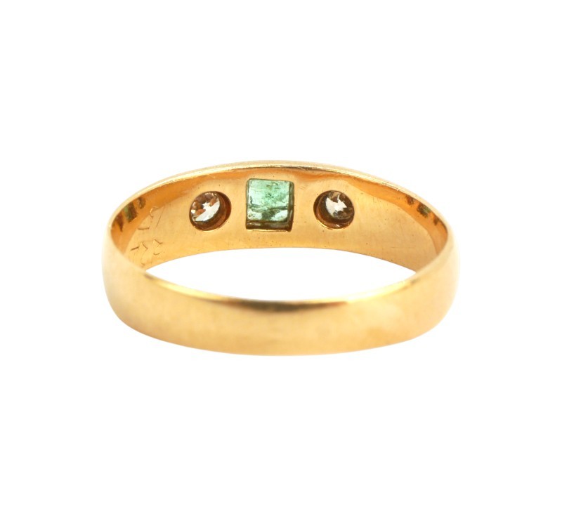 Starožitný zlatý prsten s brilianty a smaragdem