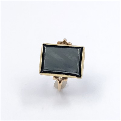Starožitný zlatý prsten s vybrušovaným onyxem, zlato zdobené gravírováním o ryzosti 14 karátů 585/1000 o celkové hmotnosti 5,46 g, velikost prstenu 52