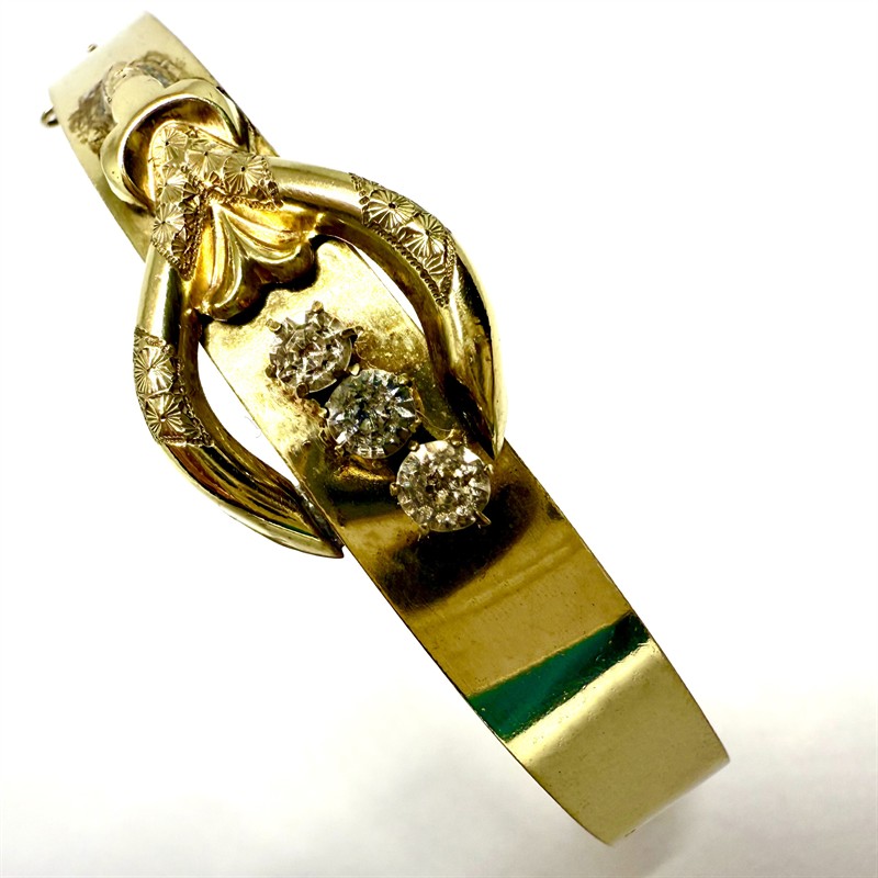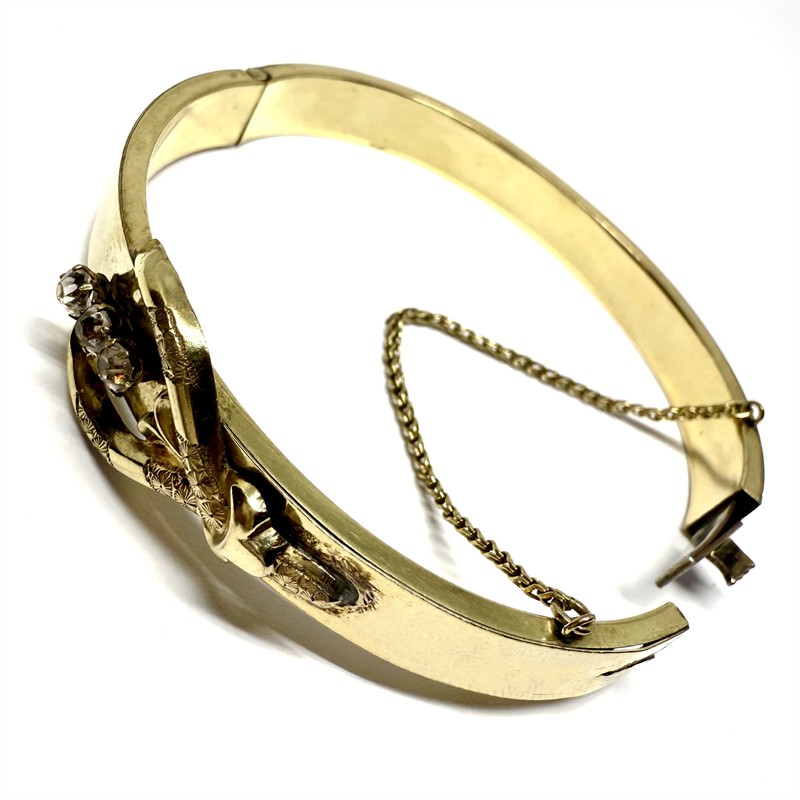 č. 180 795 Starý zlacený kruhový náramek s čirými kameny